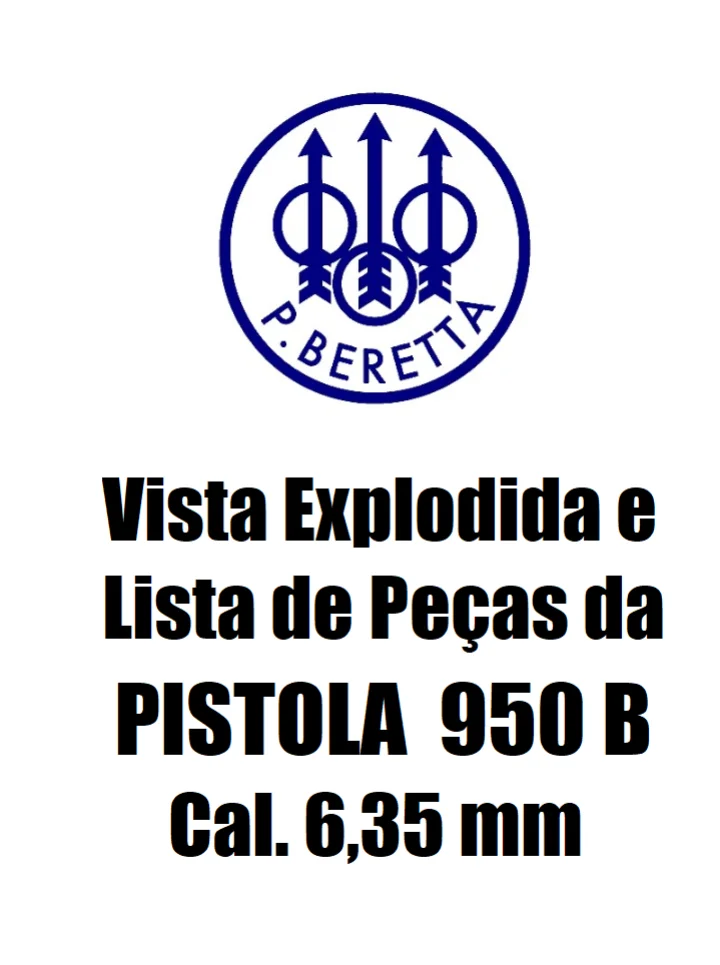 Pistola Beretta 950 B Cal. 6,35mm - Vista Explodida e Lista de Peças.