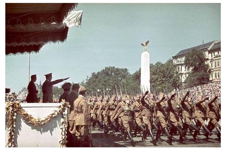A Legião Condor desfila diante Adolf Hitler após a sua arrasadora campanha na Guerra Civil Espanhola.