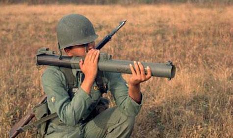 Soldado com M72 em posição de disparo.