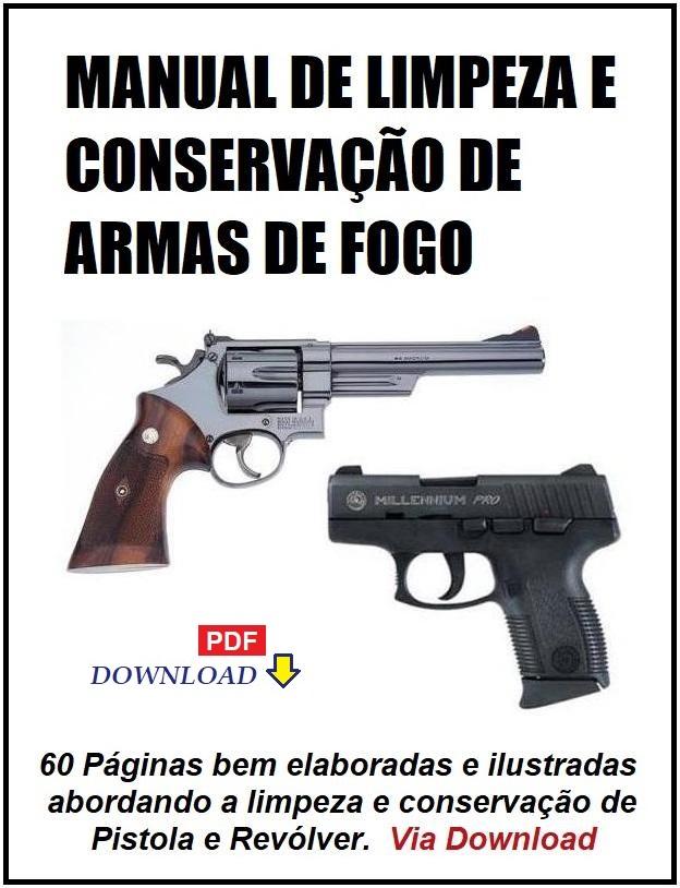 Possui 60 páginas em linguagem de fácil entendimento mostrando o passo a passo completo da limpeza correta de um revolver e uma pistola (Servindo também como ensinamento para limpeza de espingardas, rifles e carabinas).