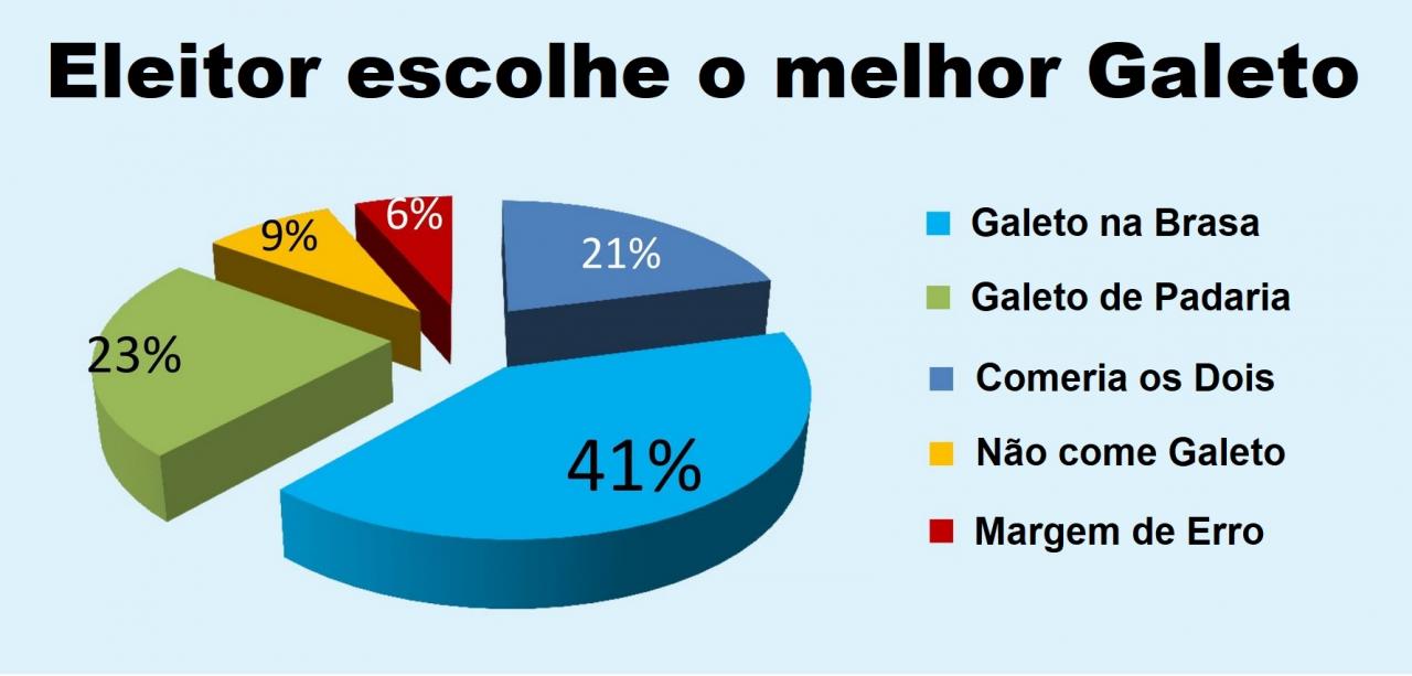 Pesquisa diz que 41 % dos Eleitores brasileiros preferem Galeto na Brasa. Galeto de Padaria fica em segundo lugar com 23%.